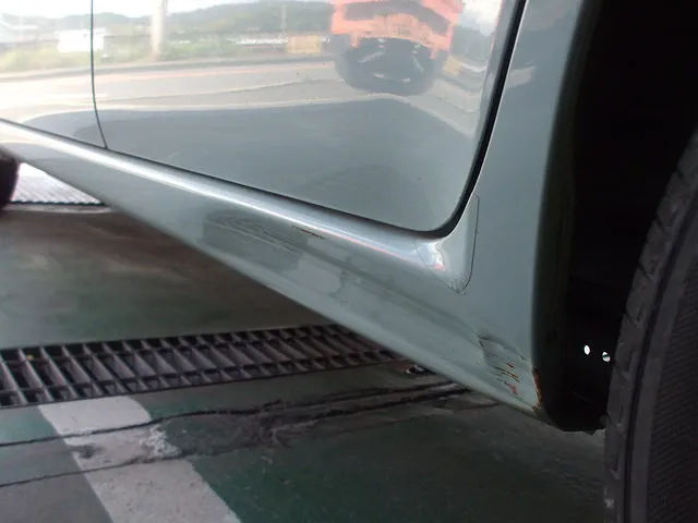 通常なら交換が必要なキズでしたが、凹みを修復しパテ作業を行いました。